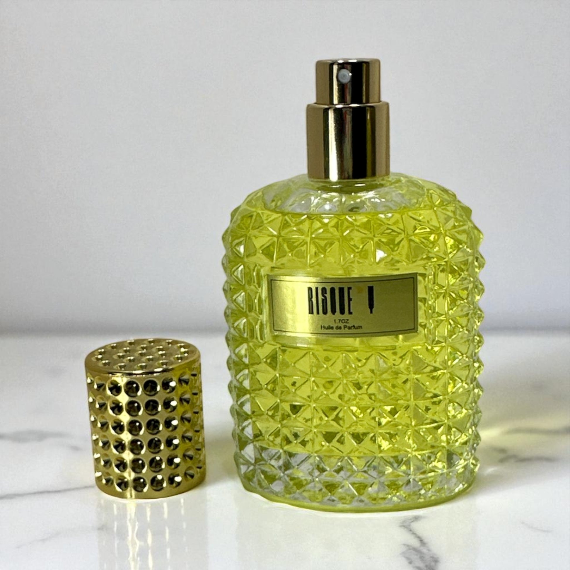 Indulge in Risque’y signature oils, our Golden Woods intense perfume oil is crafted to captivate and leave a lasting impression. From soft florals to bold, exotic blends, our scents are designed to complement your unique style. Elevate your everyday with a touch of elegance. It comes in 4 different sizes 15m roller,l 20ml spray, 1.7oz and 3.4oz spray.